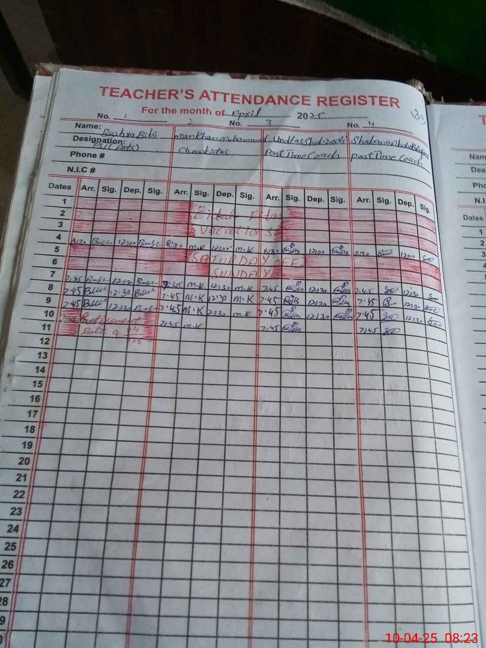 | Name: Sh**** An**** Designation: (School Headmaster's/Headmistress's) PST Phone/Cell Number: 03**** |