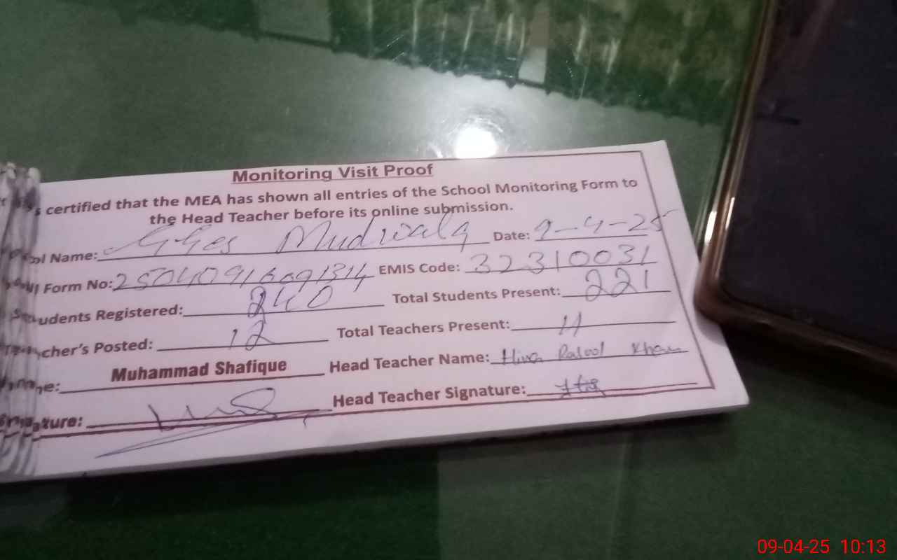 | EMIS Code: 32310031 | Name of School: GGES MUD WALA | |||