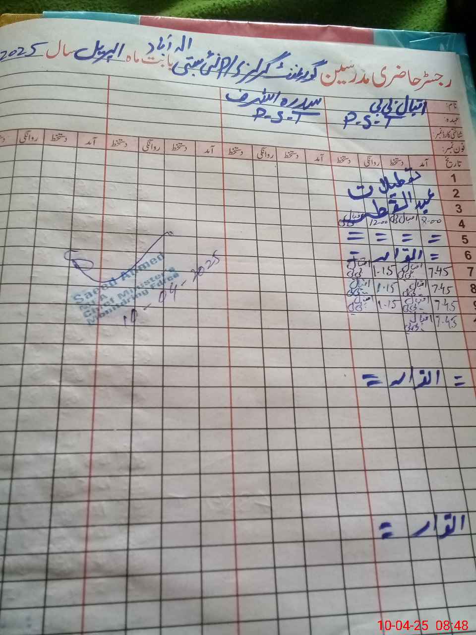 | Name: IQ**** BI**** Designation: (School Headmaster's/Headmistress's) PST Phone/Cell Number: 03**** |