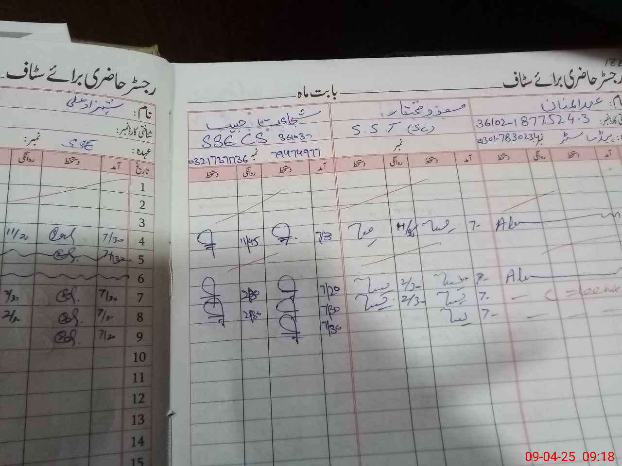 | CNIC | Full Name | Designation | R/C | Absence during last cal. month |