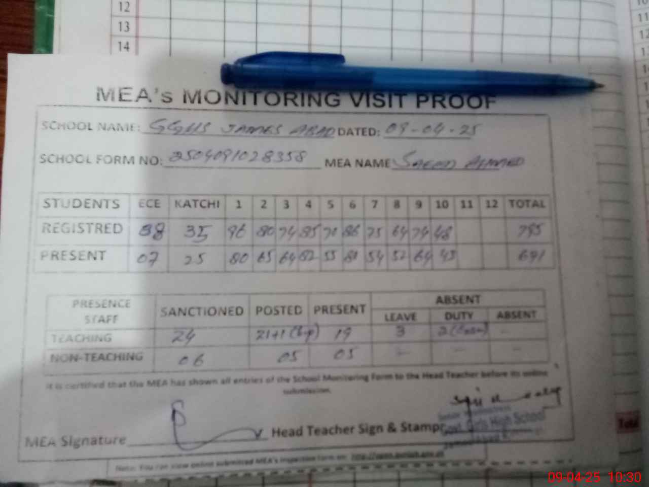 | EMIS Code: 36410096 | Name of School: GGHS JAMES ABAD, KABIRWALA | |||