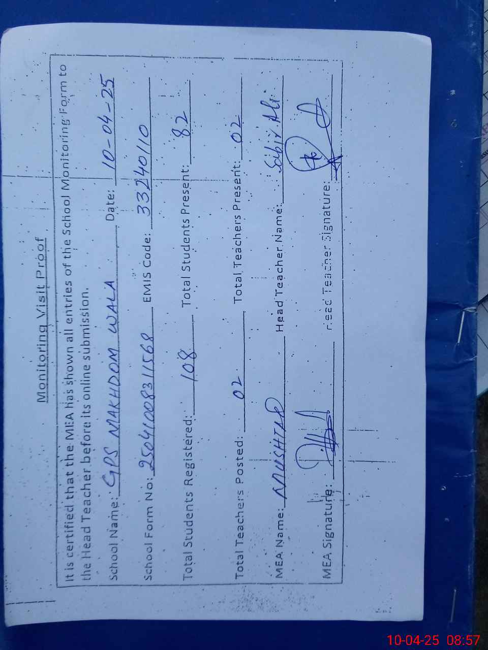 | EMIS Code: 33240110 | Name of School: GPS MAKHDOM WALA | |||
