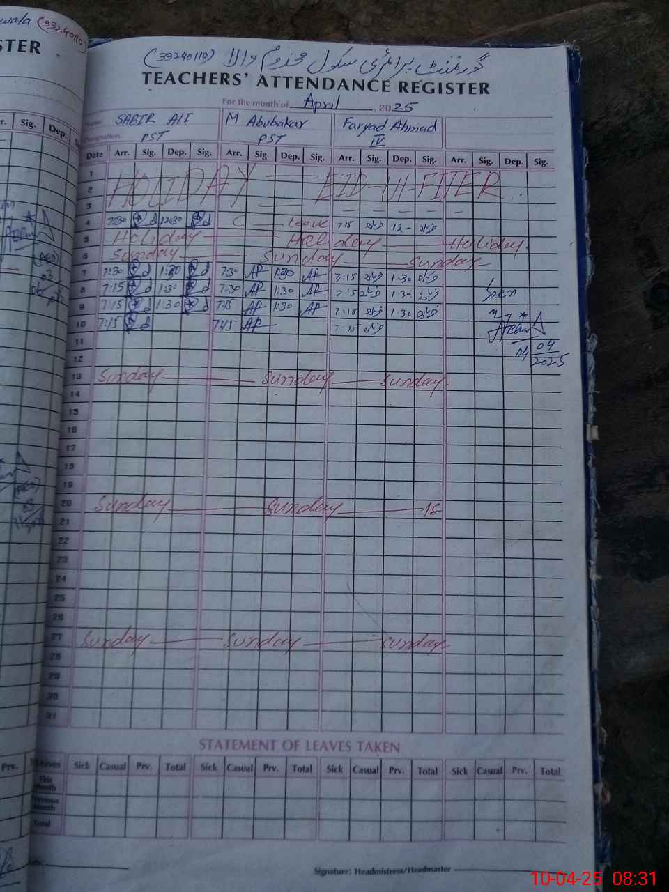 | Name: Sa**** Al**** Designation: (School Headmaster's/Headmistress's) PST Phone/Cell Number: 03**** |