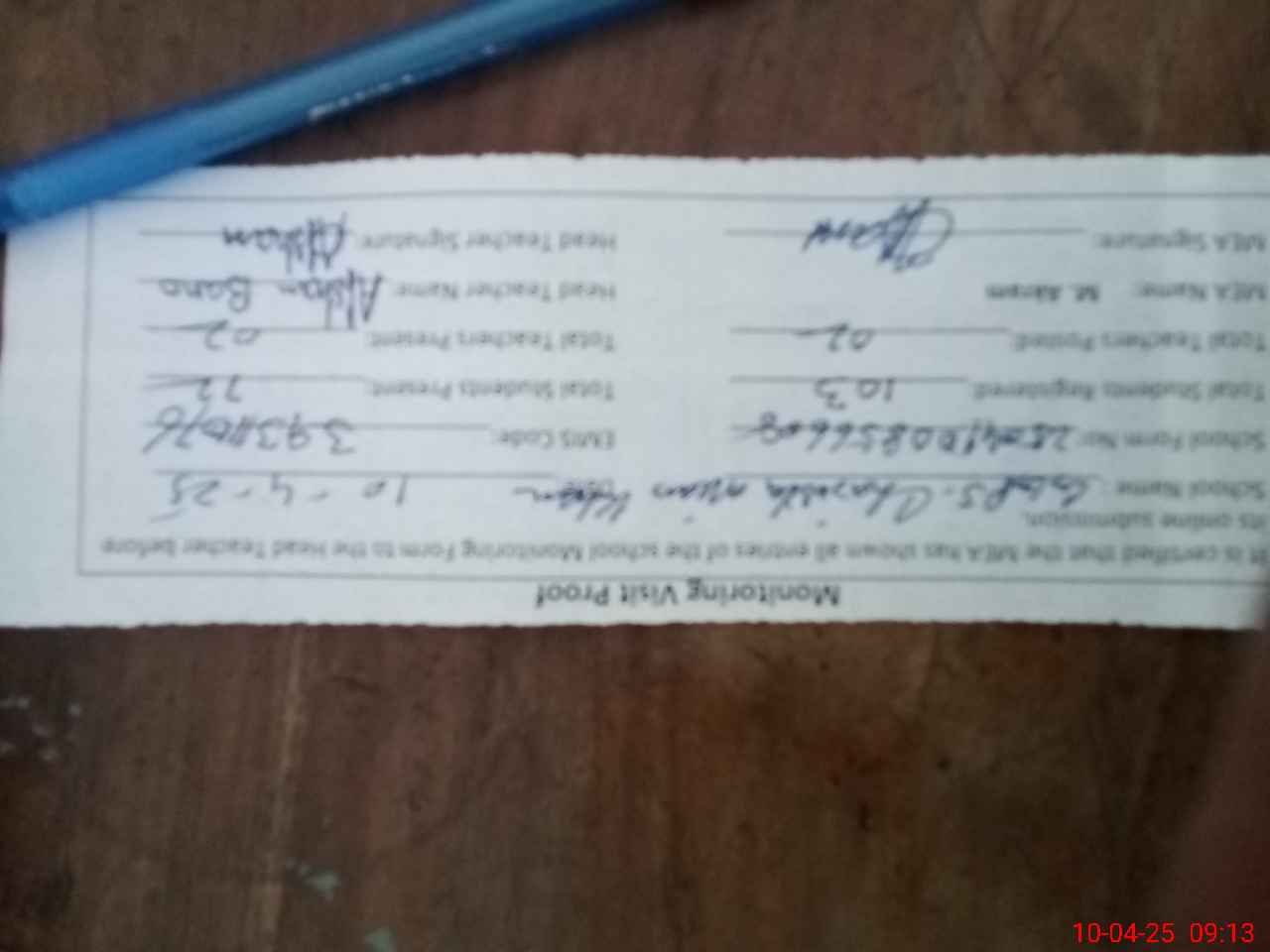 | Attendance Register | Head Teacher | MEA with School | Visit Proof |