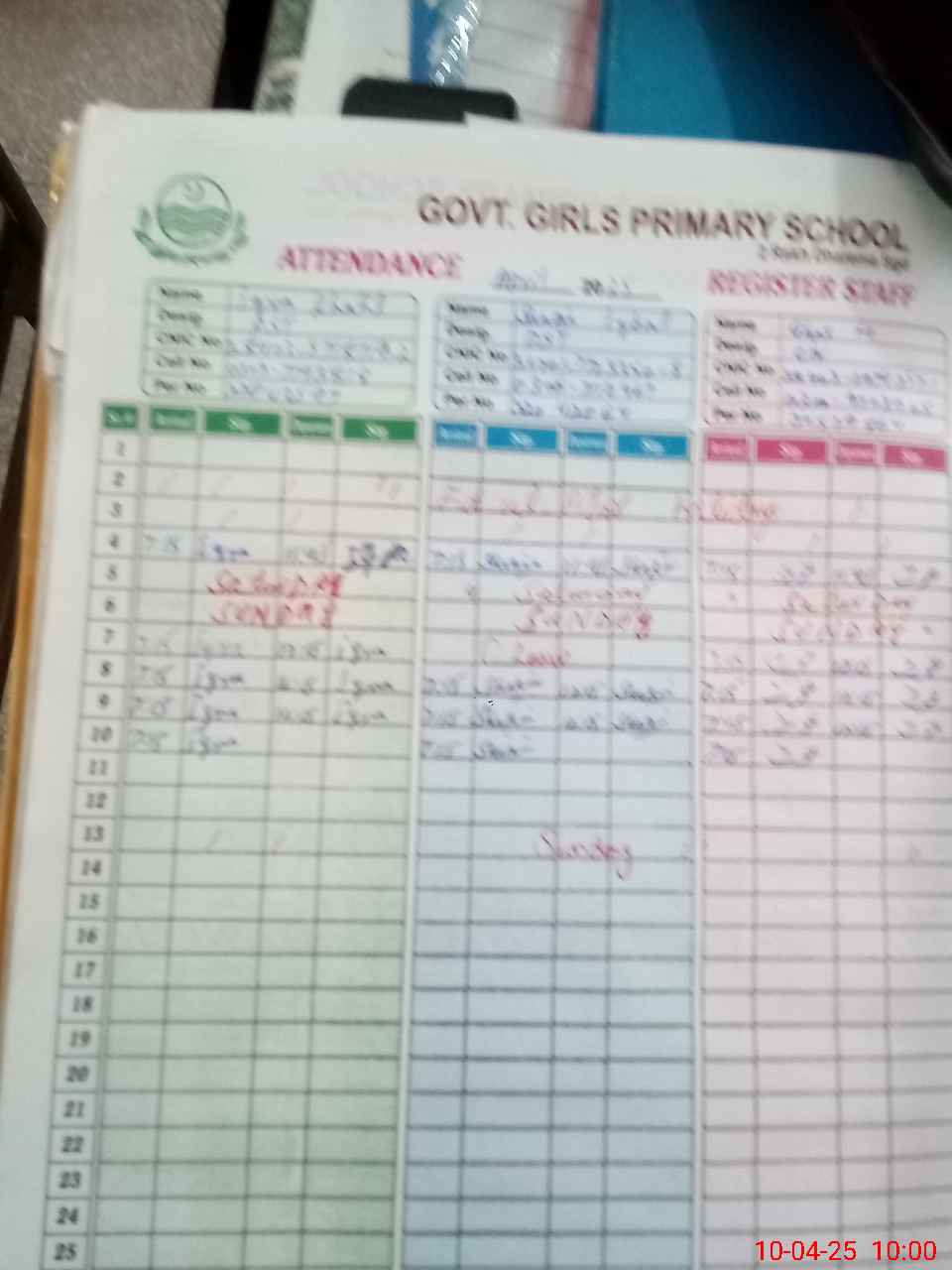 | Name: IQ**** KH**** Designation: (School Headmaster's/Headmistress's) PST Phone/Cell Number: 03**** |