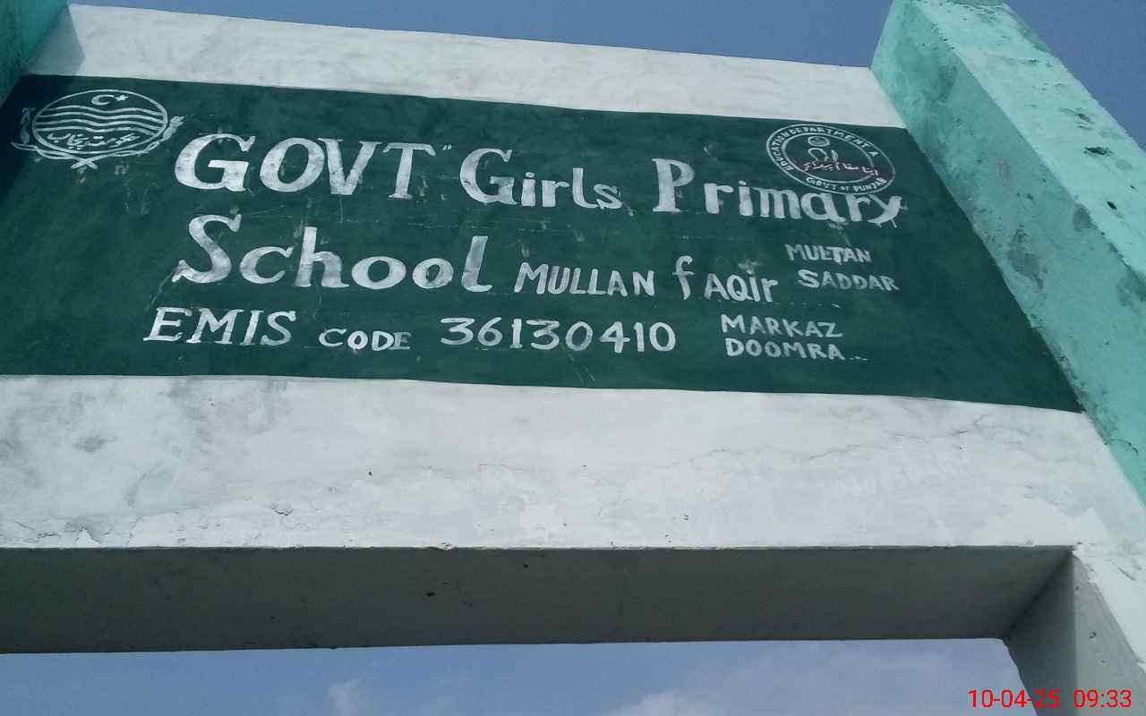| EMIS Code: 36130410 | Name of School: GGPS MULAN FAQIR MULTAN | |||