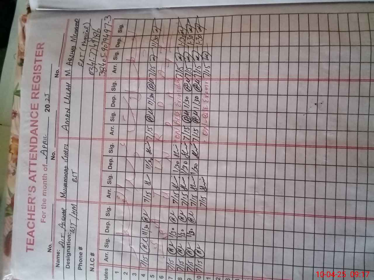 | Name: AL**** AS**** Designation: (School Headmaster's/Headmistress's) SST (ARTS) Phone/Cell Number: 03**** |