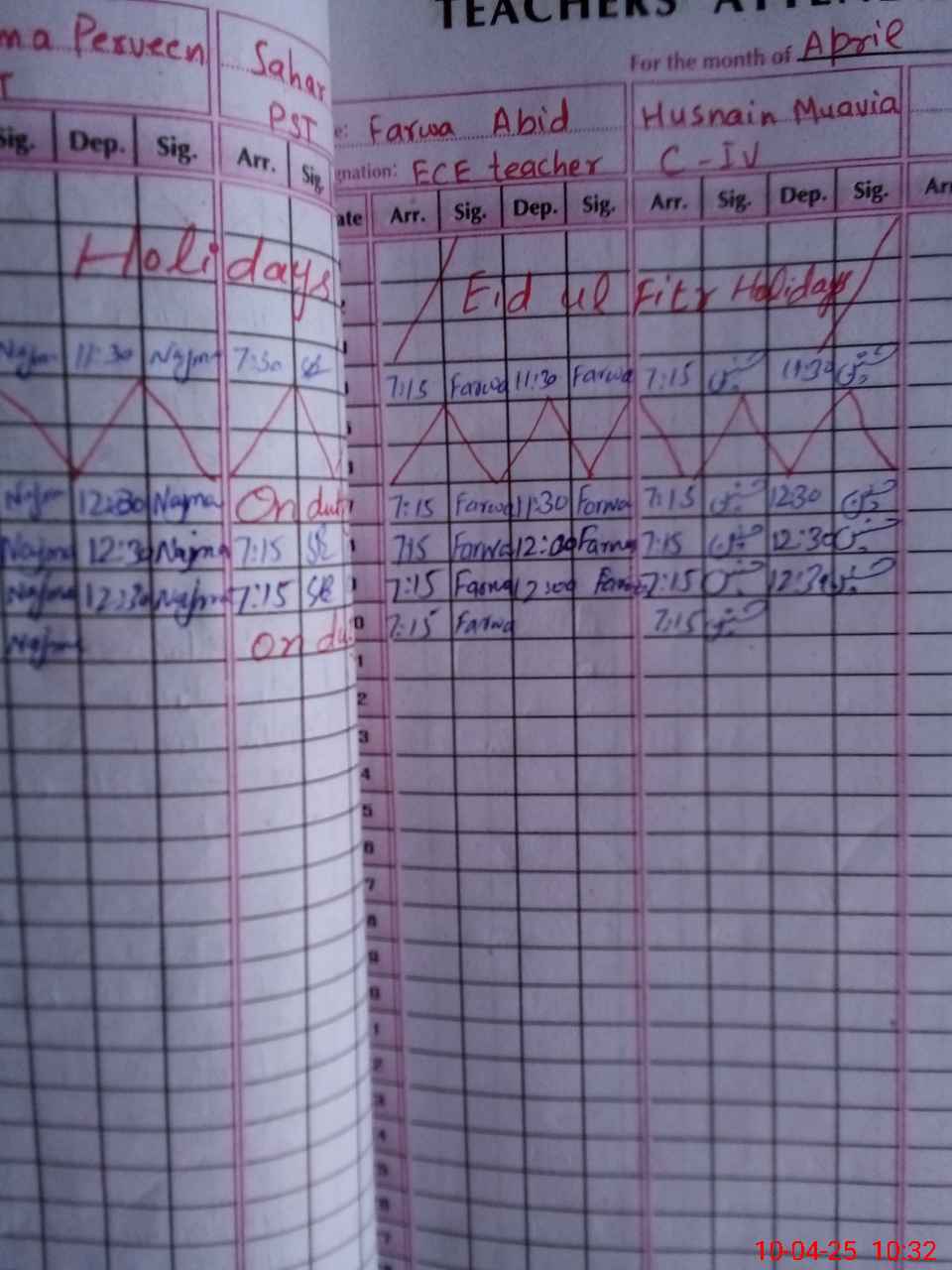 | Leave | Duty | Absent | Maternity | Medical | Ex- Pak |
