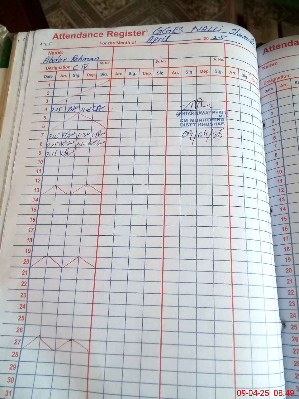 | Monitoring Date: 09-04-2025 | Start Time: 09-04-2025 08:22 AM | End Time: 09-04-2025 08:51 AM | Name of MEA: AK**** NA**** (R**** | |