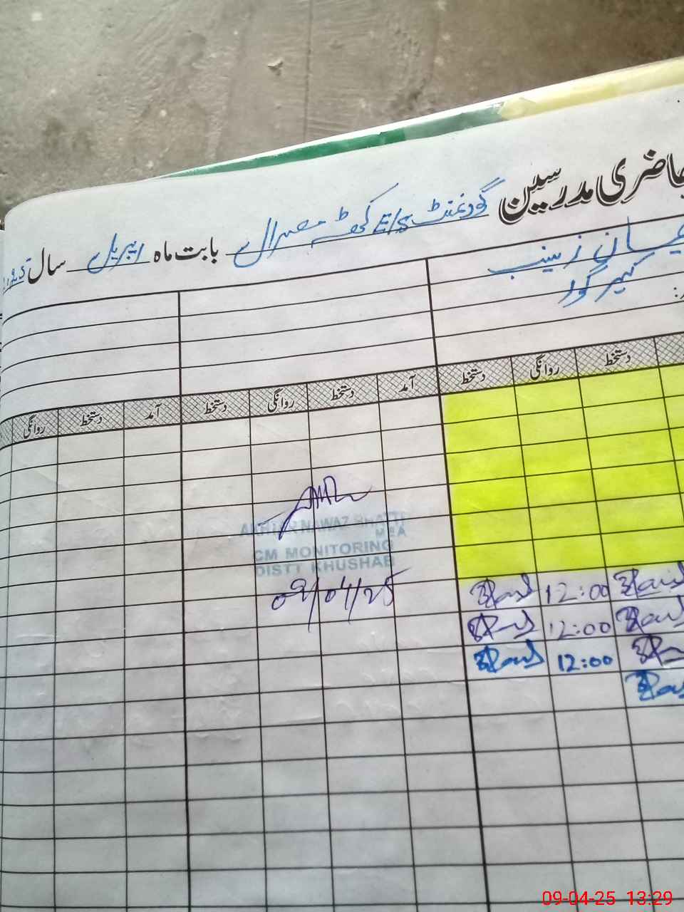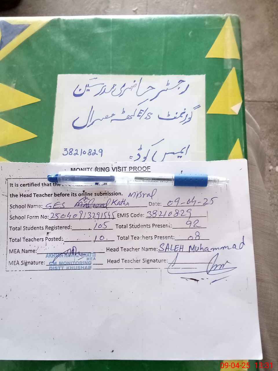 | District: KHUSHAB | Tehsil: KHUSHAB | Markaz: KATHA SAGRAL (WEST) (MALE) | Level: Middle | |