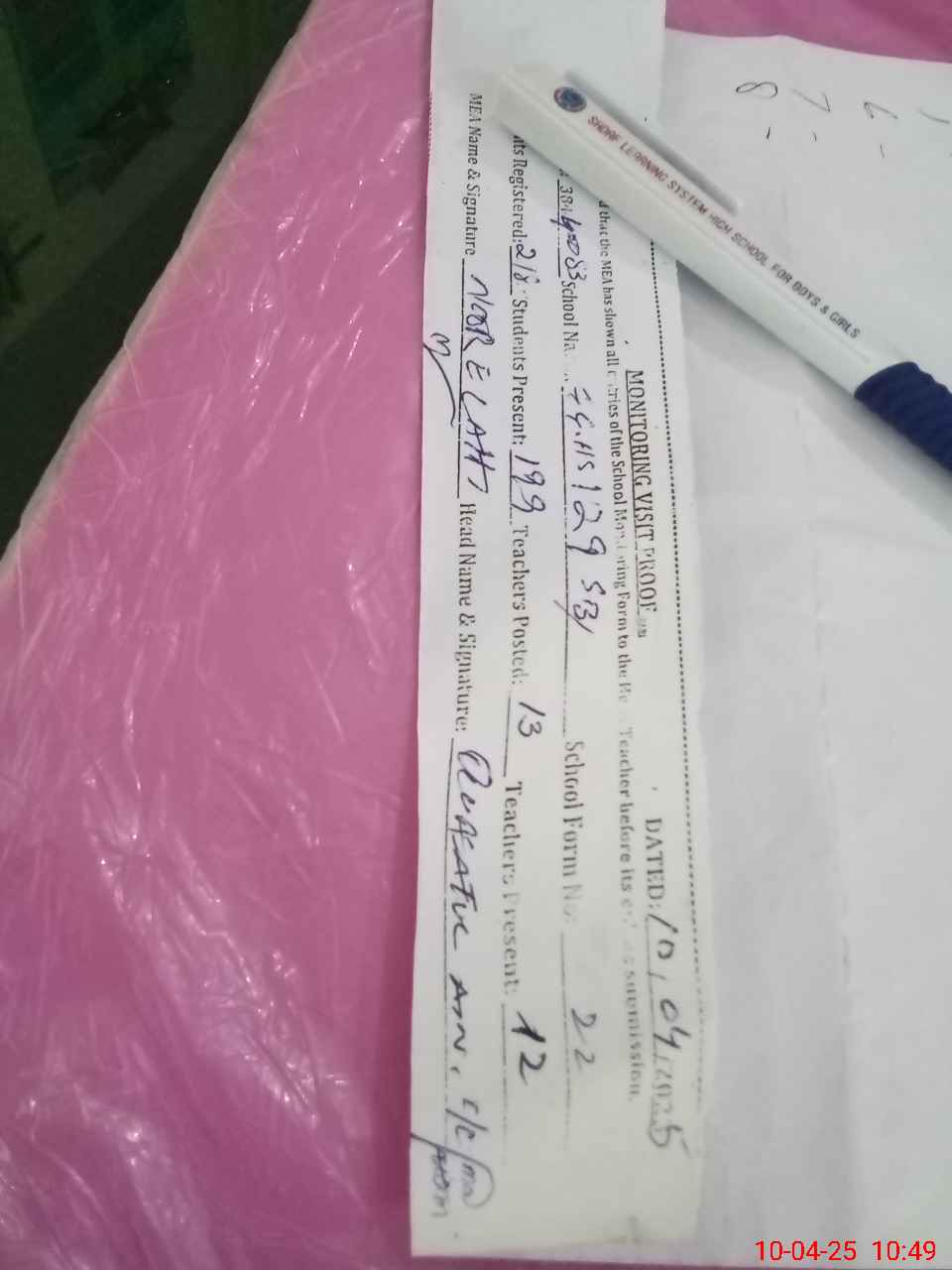 | Certified that this School was Inspected by the Undersigned MEA/DMO Today and the Information Stated Above is as Per Record. | |||||
