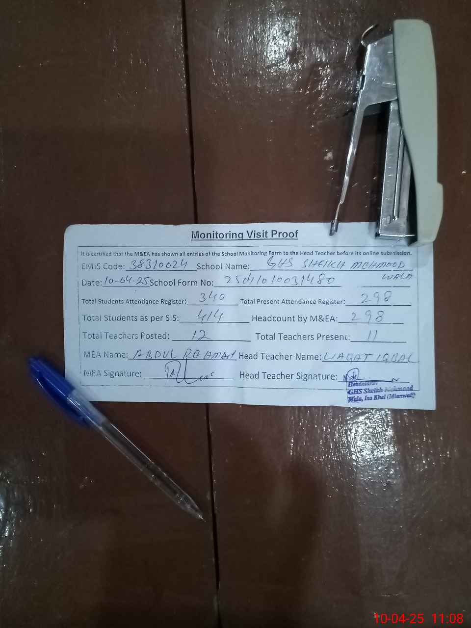 | EMIS Code: 38310024 | Name of School: GHS SHEIKH MEHMOOD WALA | |||