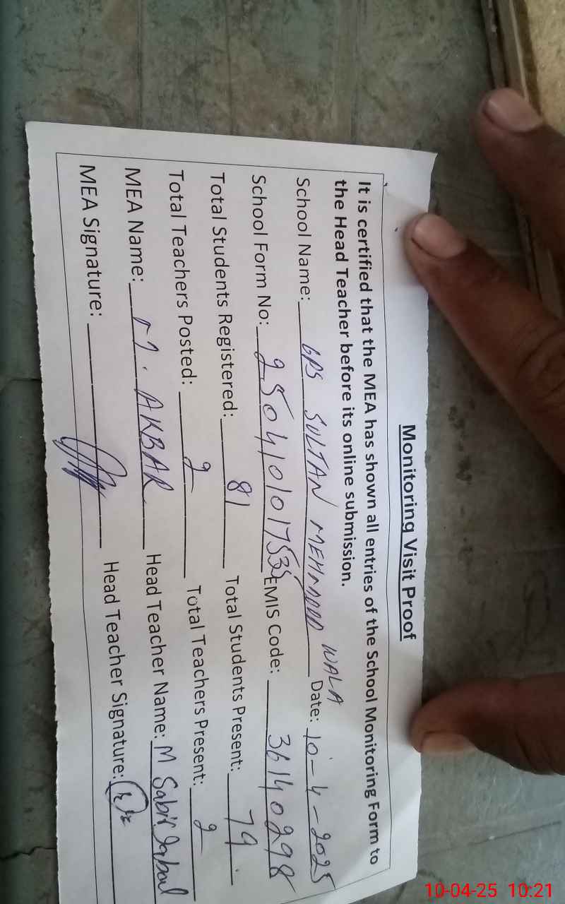 | EMIS Code: 36140298 | Name of School: GPS SULTAN MEHMOOD WALA P/O BEAT KATCH | |||