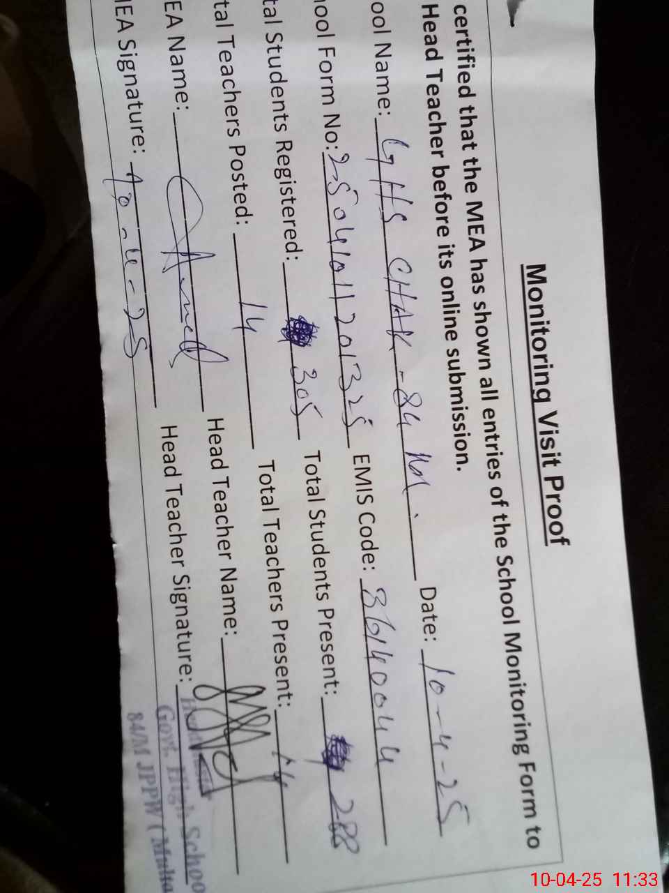 | Name: MU**** JA**** IQ**** Designation: (School Headmaster's/Headmistress's) HEAD MASTER Phone/Cell Number: 03**** |