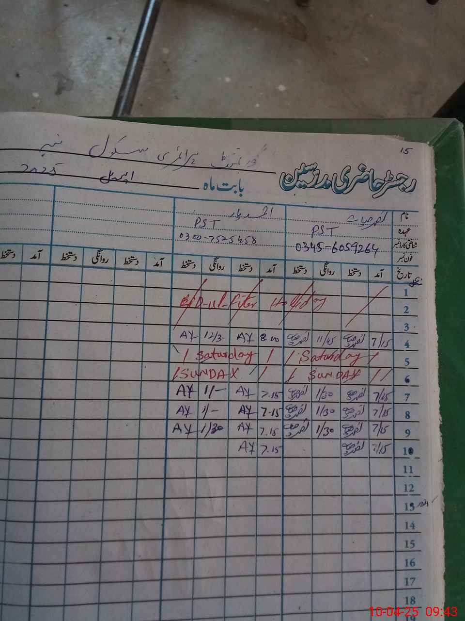 | Name: NA**** HA**** Designation: (School Headmaster's/Headmistress's) PST Phone/Cell Number: 03**** |