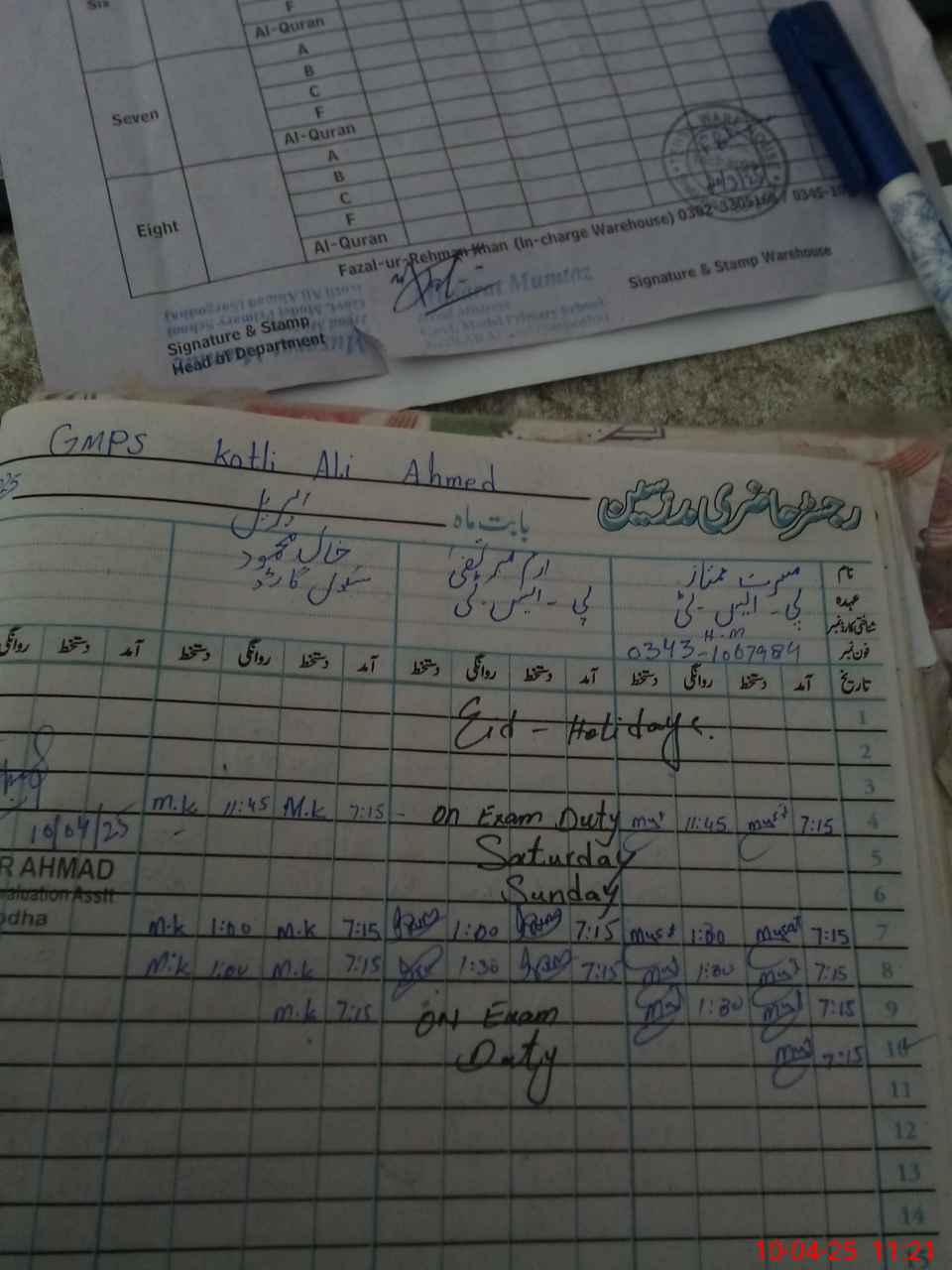 | Name: MU**** MU**** Designation: (School Headmaster's/Headmistress's) PST Phone/Cell Number: 03**** |