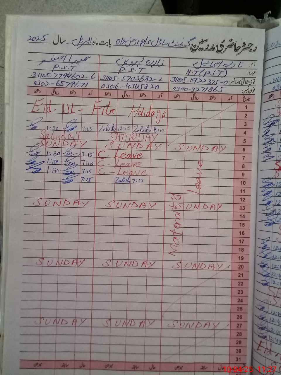 | 31**** | Na**** Is**** | PST | Regular | 2 | 0 | 0 | 0 | 0 | 0 | 0 | 0 | 2 | Maternity |