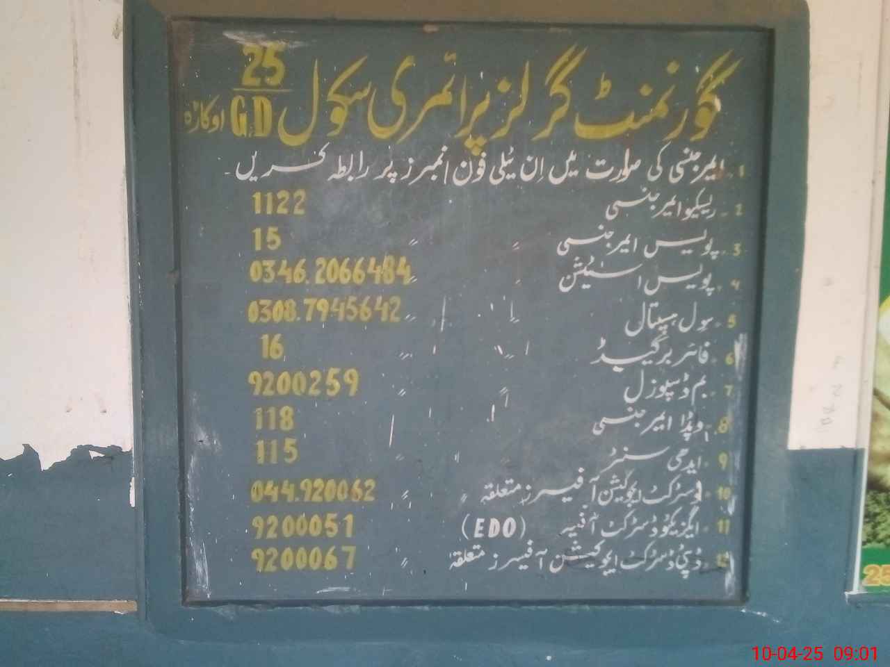 | EMIS Code: 39320501 | Name of School: GGPS 25/G.D | |||
