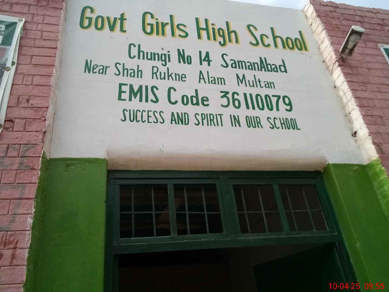 | EMIS Code: 36110079 | Name of School: GGHS CHUNGI NO. 14 SAMANABAD MULTAN | |||