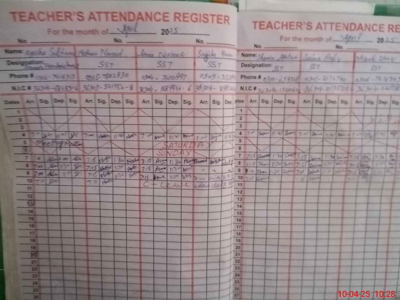 | 36**** | Sa**** Ra**** | SST | Regular | 0 | 0 | 0 | 0 | 0 | 0 | 0 | 0 | 0 | Exam Duty |