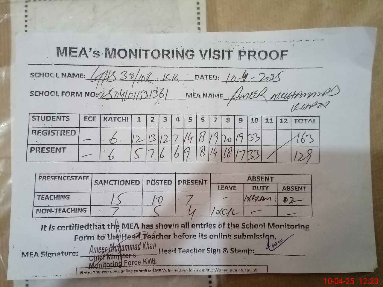 | EMIS Code: 36420019 | Name of School: GHS 30/10-R, KACHA KHUH | |||
