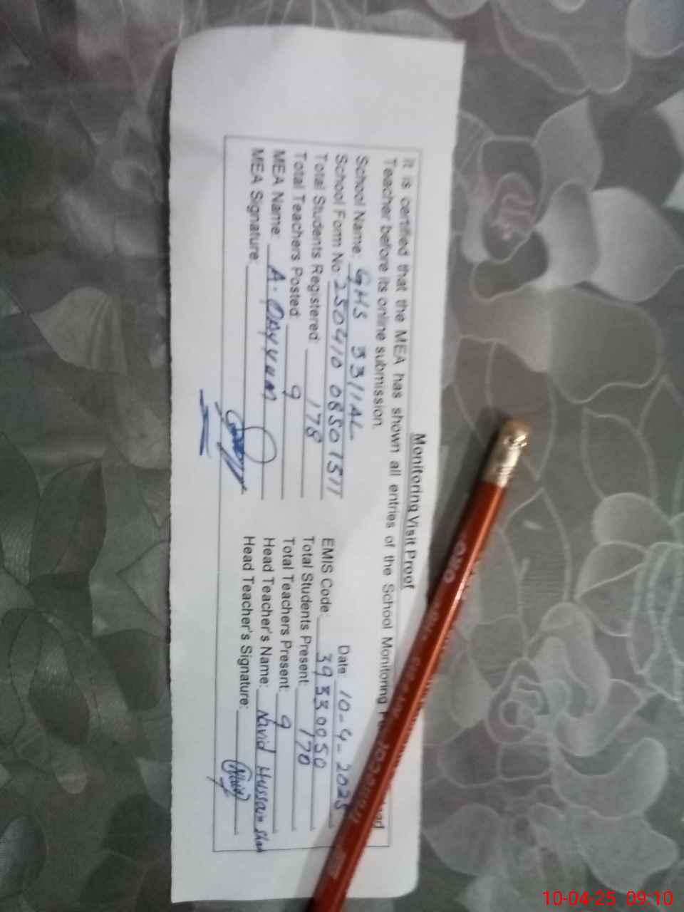 | Certified that this School was Inspected by the Undersigned MEA/DMO Today and the Information Stated Above is as Per Record. | |||||
