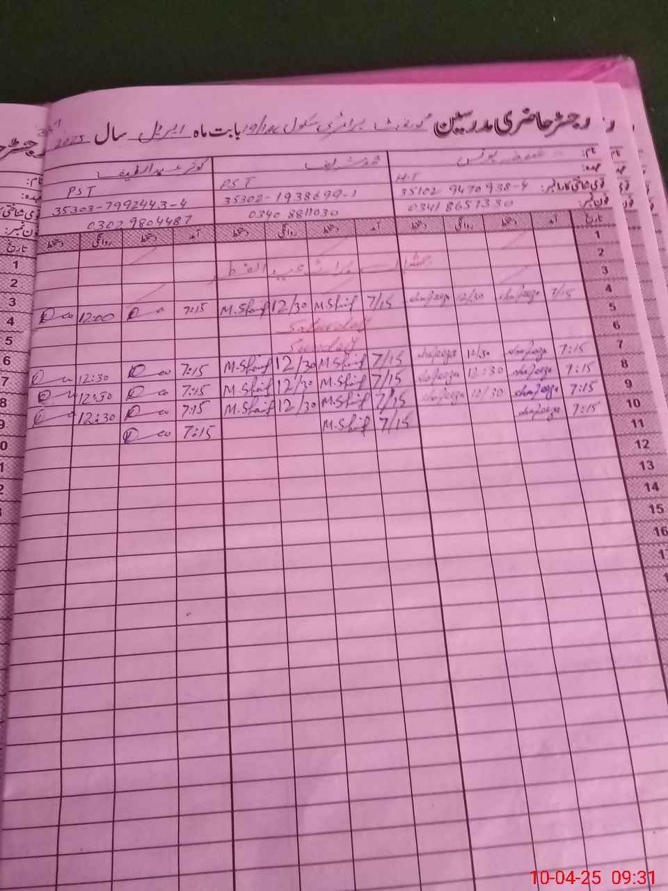 | Name: Sh**** Yo**** Designation: (School Headmaster's/Headmistress's) PST Phone/Cell Number: 03**** |