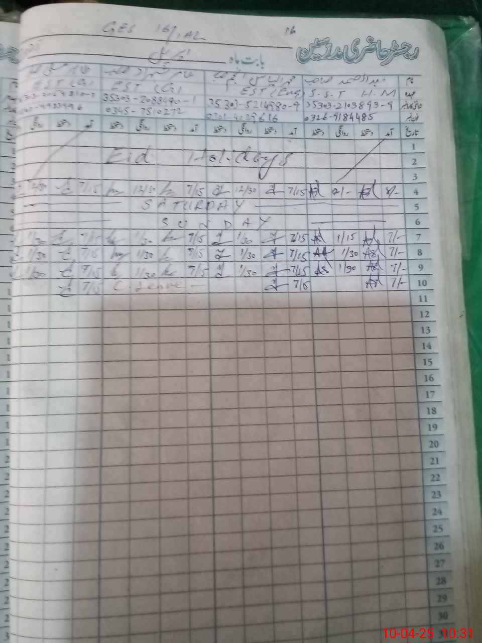 | CNIC | Full Name | Designation | R/C | Absence During Last Calender Month |