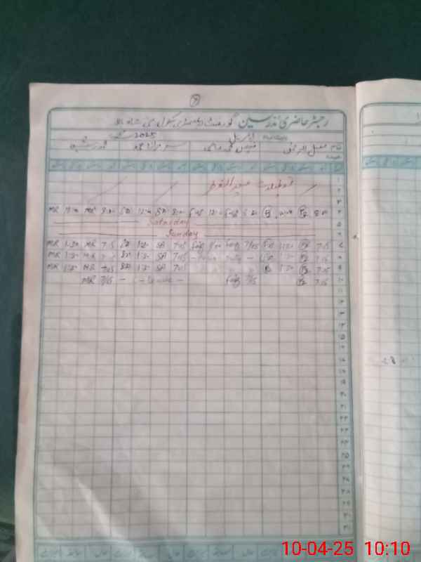 | CNIC | Full Name | Designation | R/C | Absence During Last Calender Month |