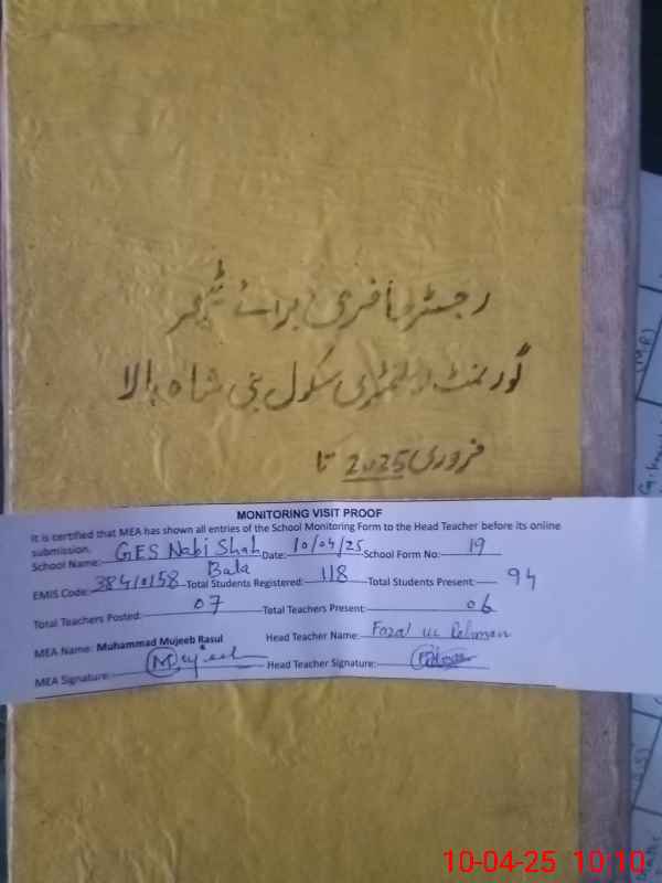 | EMIS Code: 38410158 | Name of School: GES NABI SHAH BALA | |||