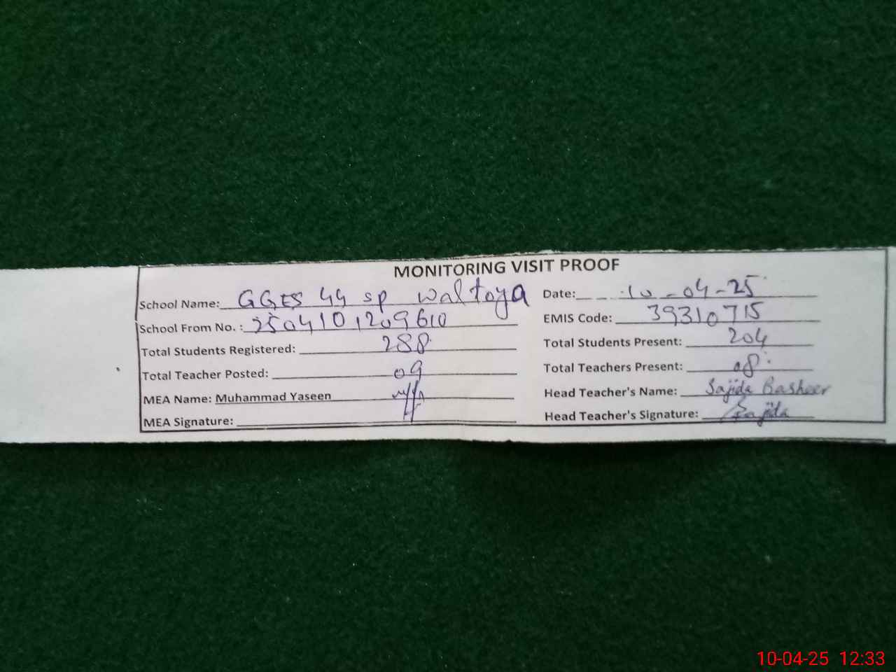 | EMIS Code: 39310715 | Name of School: GGES CHAK NO. 44/SP WALTOYA | |||