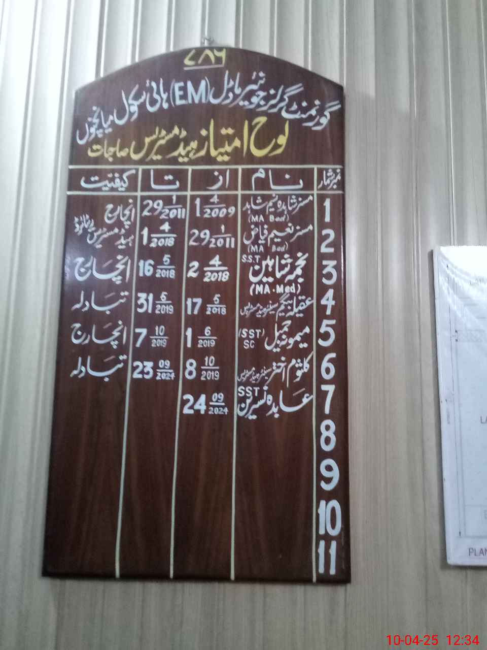 | EMIS Code: 36430075 | Name of School: GGHS JUNIOR MODEL MIAN CHANNU | |||