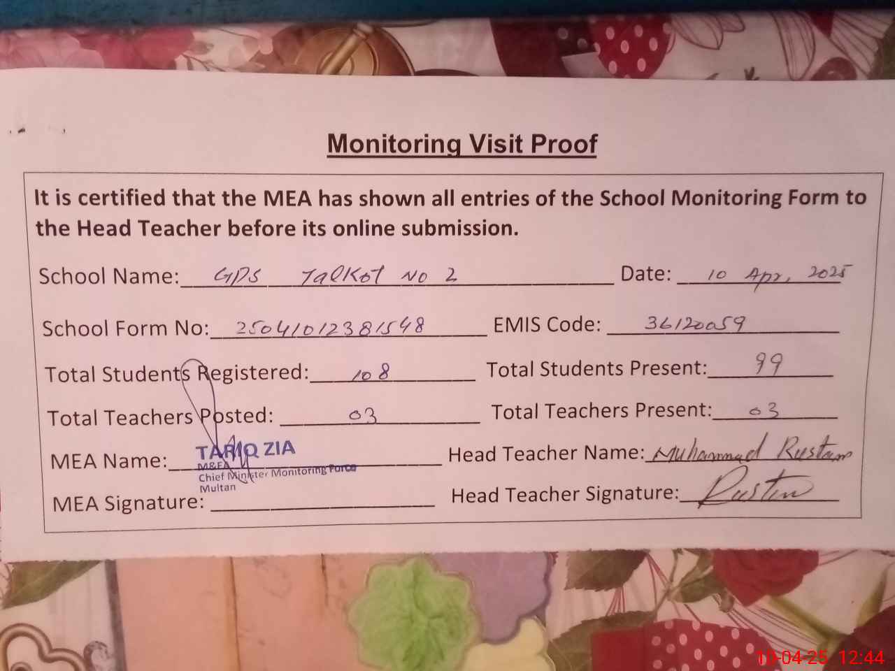| EMIS Code: 36120059 | Name of School: GPS TALKOT 2 KHAN GARAH ROAD SHUJABAD | |||