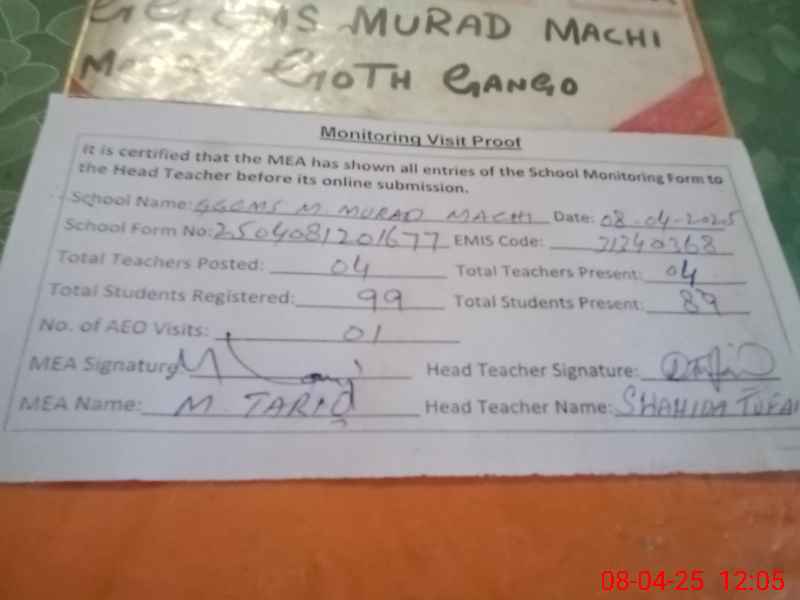 | EMIS Code: 31340368 | Name of School: GGCMS MUHAMMAD MURAD MACHI | |||
