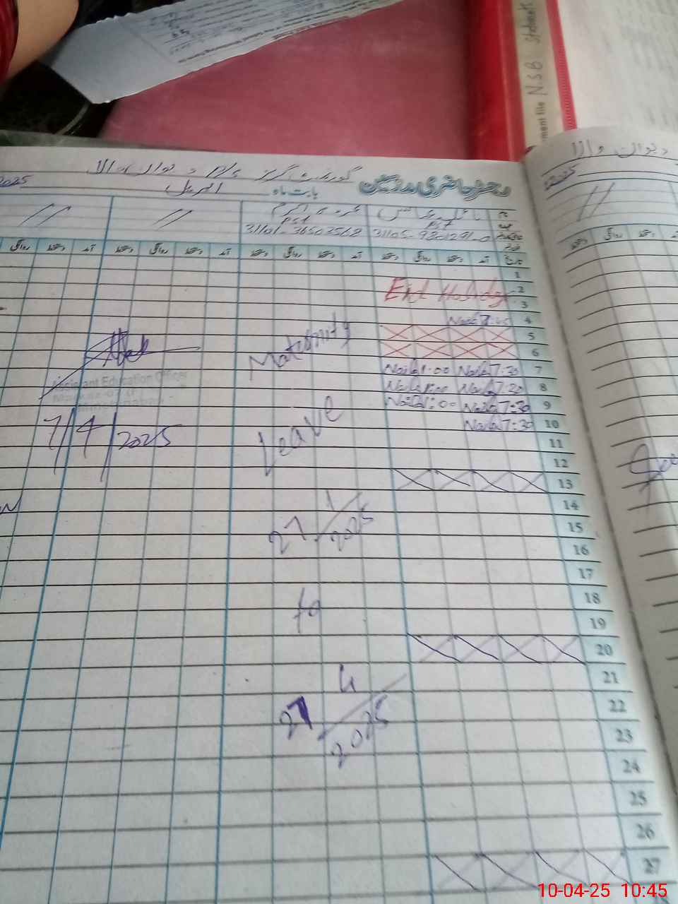 | Leave | Duty | Absent | Maternity | Medical | Ex- Pak |