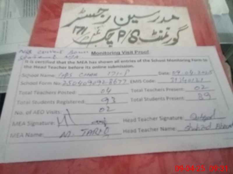 | Attendance Register | Head Teacher | MEA with School | Visit Proof |