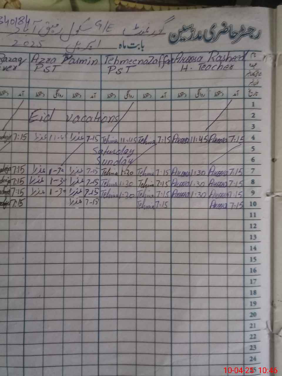 | Name: Ar**** Ra**** Designation: (School Headmaster's/Headmistress's) PST Phone/Cell Number: 03**** |