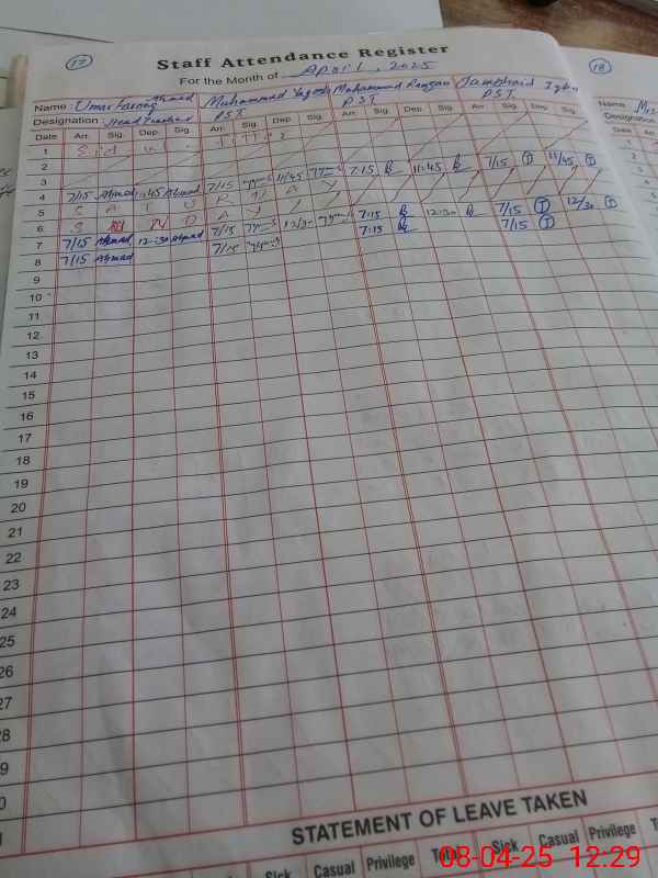 | Name: Um**** Fa**** Designation: (School Headmaster's/Headmistress's) PST/PTC/JV Phone/Cell Number: 03**** |