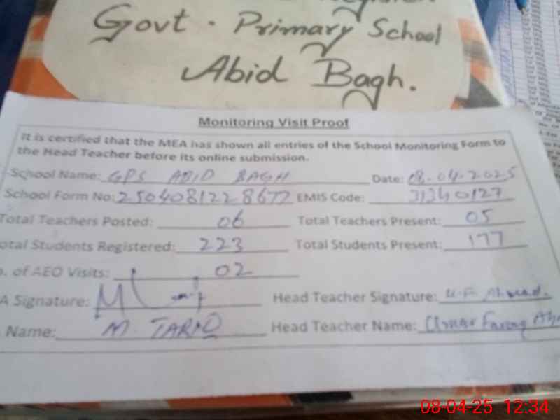 | EMIS Code: 31340127 | Name of School: GPS ABID BAGH | |||