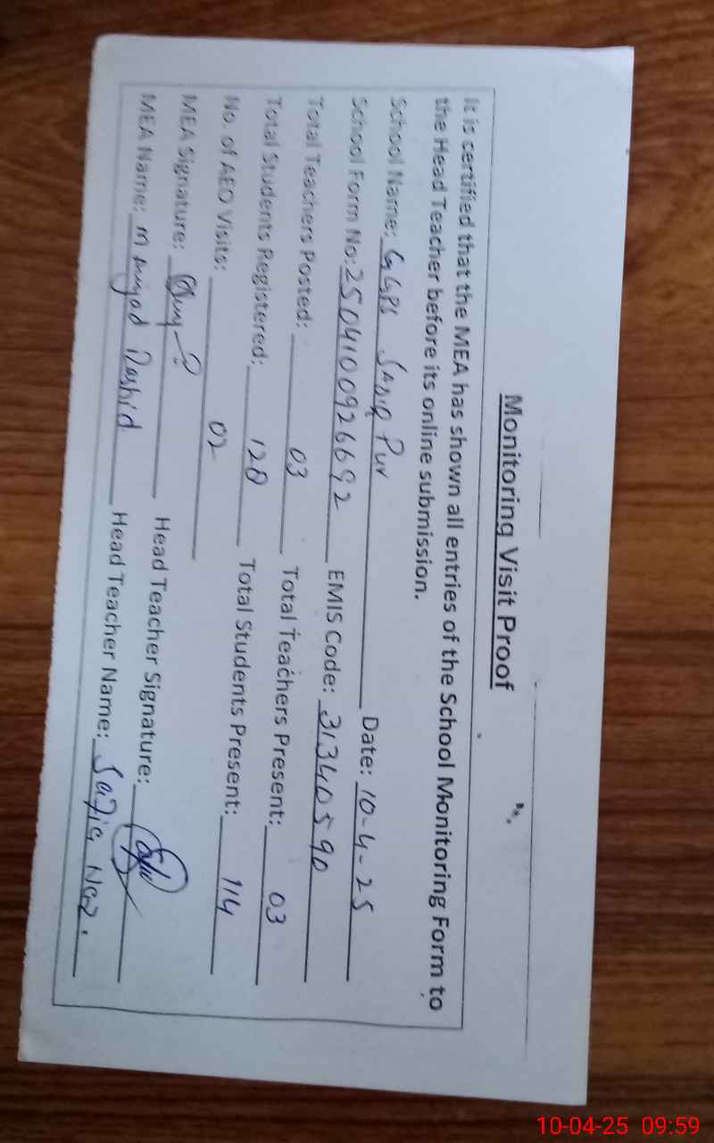 | EMIS Code: 31340590 | Name of School: GGPS SADIQ PUR | |||