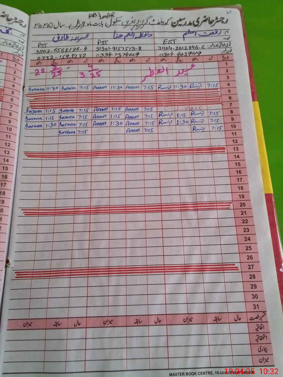 | CNIC | Full Name | Designation | R/C | Absence During Last Calender Month |