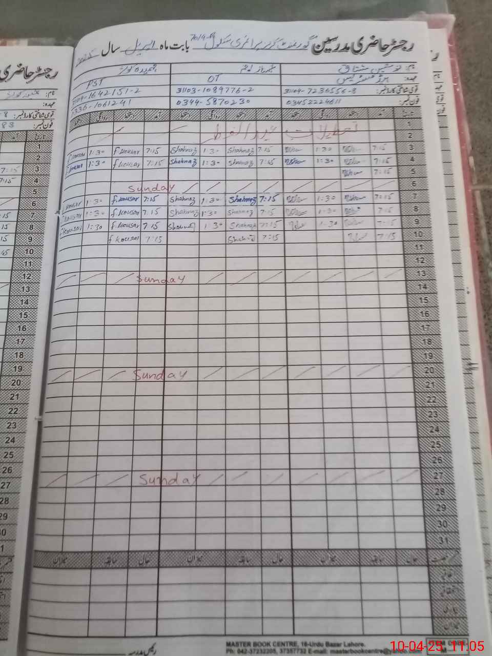 | Name: No**** Mu**** Designation: (School Headmaster's/Headmistress's) PST Phone/Cell Number: 03**** |