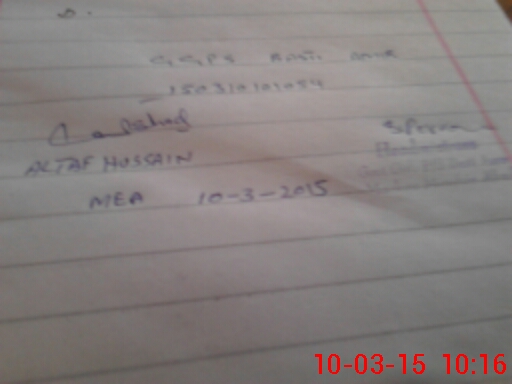 | Monitoring Date: 10-03-2015 | Start Time: 10-03-2015 09:57 AM | End Time: 10-03-2015 10:16 AM | Name of MEA: Al**** Hu**** BN**** | |