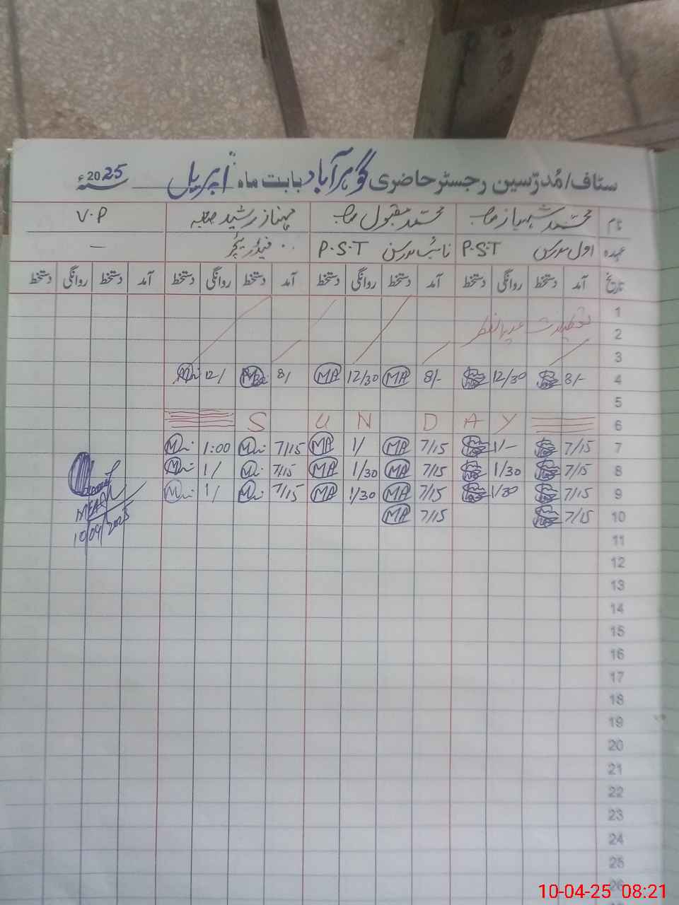 | Name: MU**** SH**** Designation: (School Headmaster's/Headmistress's) PST Phone/Cell Number: 03**** |