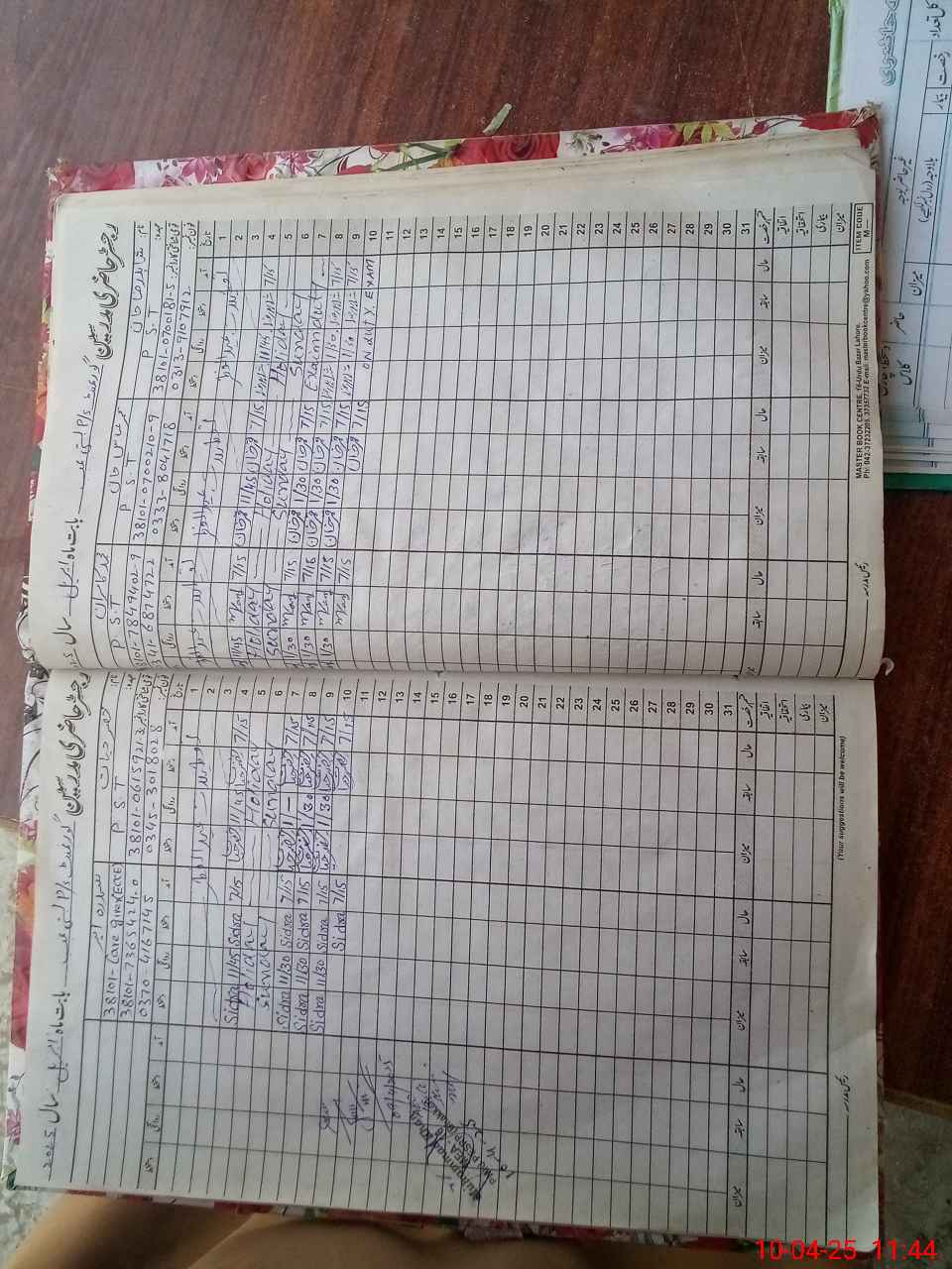 | CNIC | Full Name | Designation | R/C | Absence During Last Calender Month |