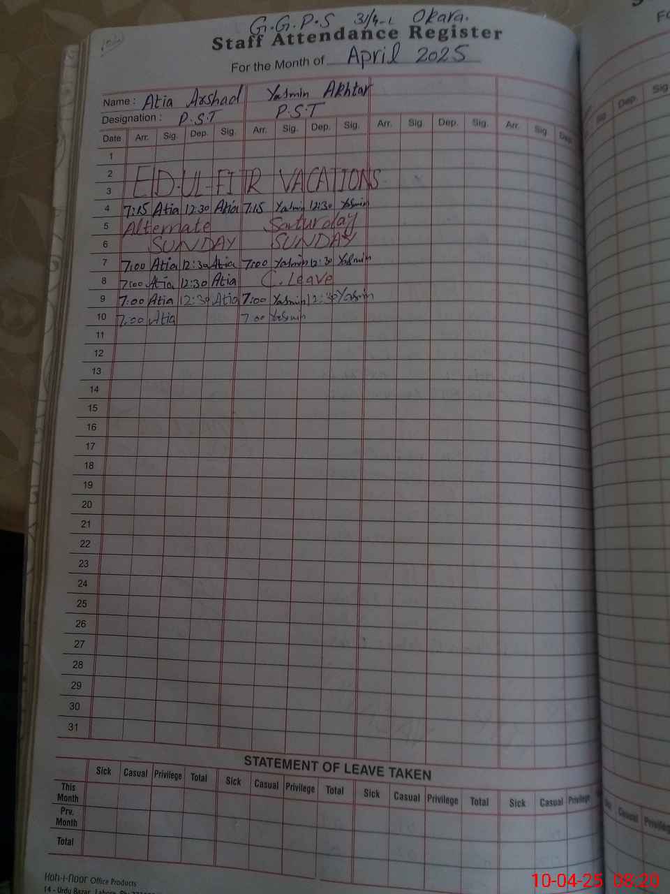 | Name: At**** Ar**** Designation: (School Headmaster's/Headmistress's) PST Phone/Cell Number: 03**** |