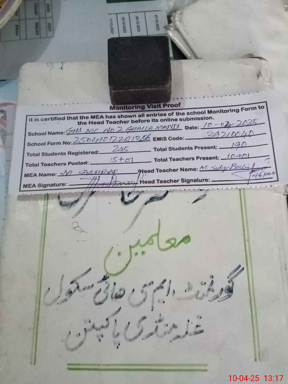 | EMIS Code: 39210040 | Name of School: GHS MC NO. 2 GHALLA MANDI | |||