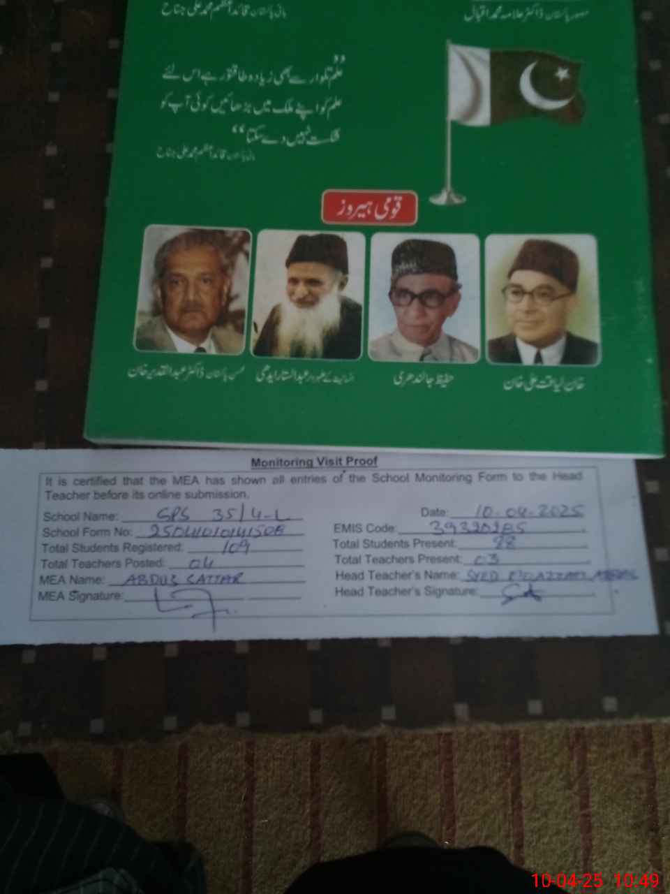 | EMIS Code: 39320285 | Name of School: GPS CHAK 35/4-L | |||