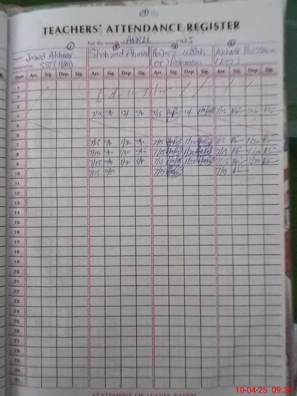 | 36**** | Ha**** Mu**** Ar**** Az**** | PST | Regular | 0 | 0 | 0 | 0 | 0 | 0 | 0 | 0 | 0 | Exam Duty |