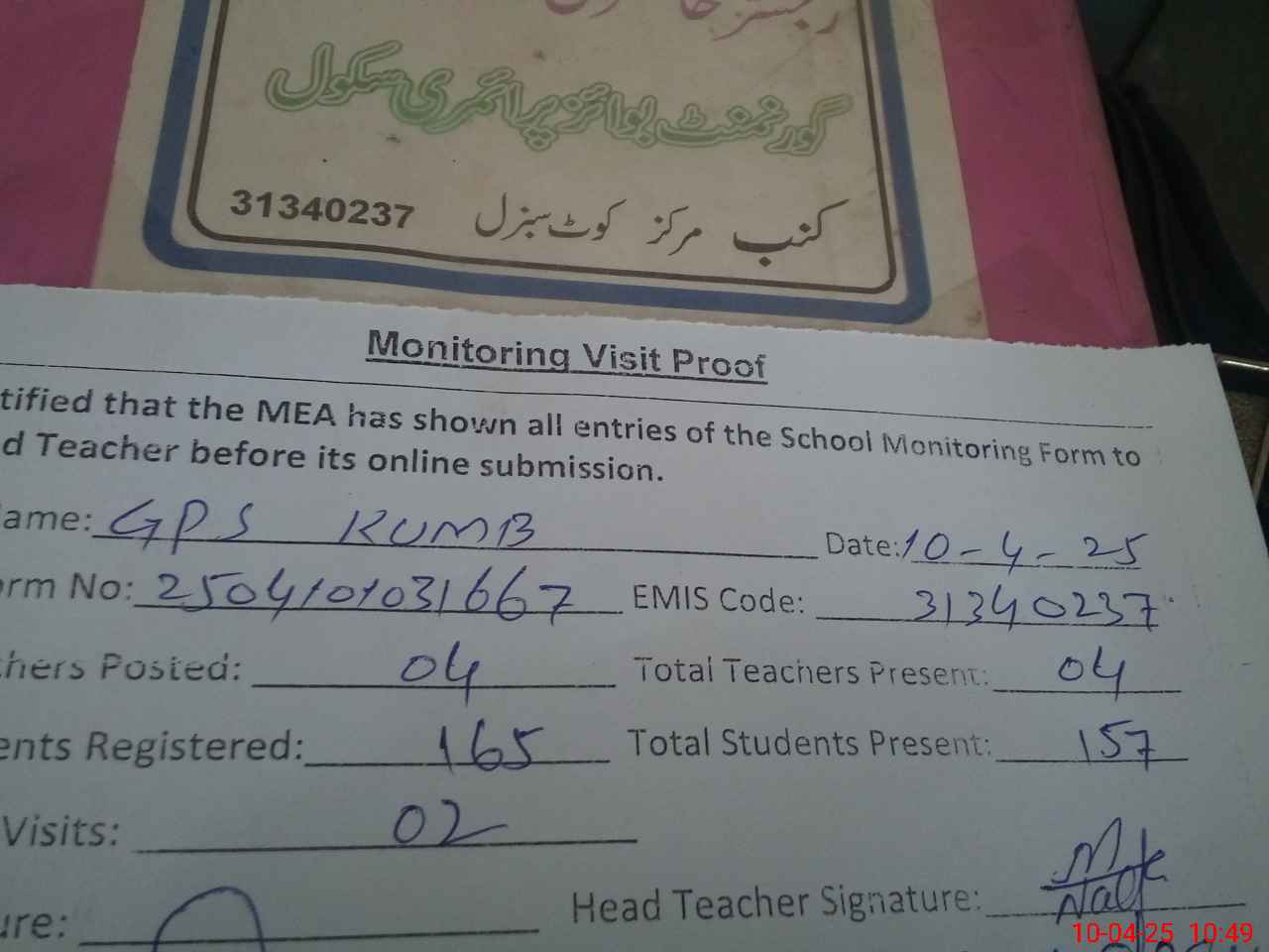 | EMIS Code: 31340237 | Name of School: GPS KUMB | |||